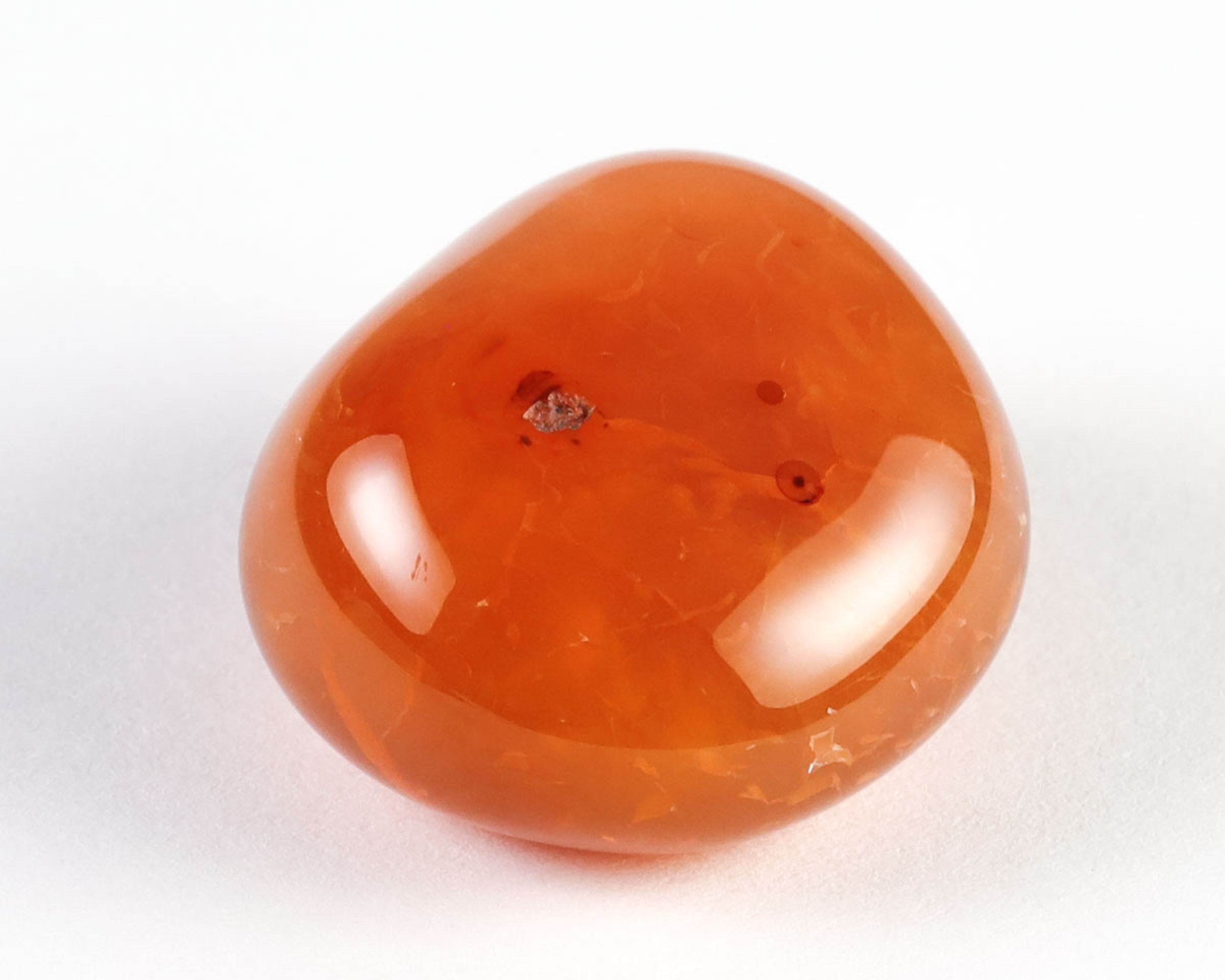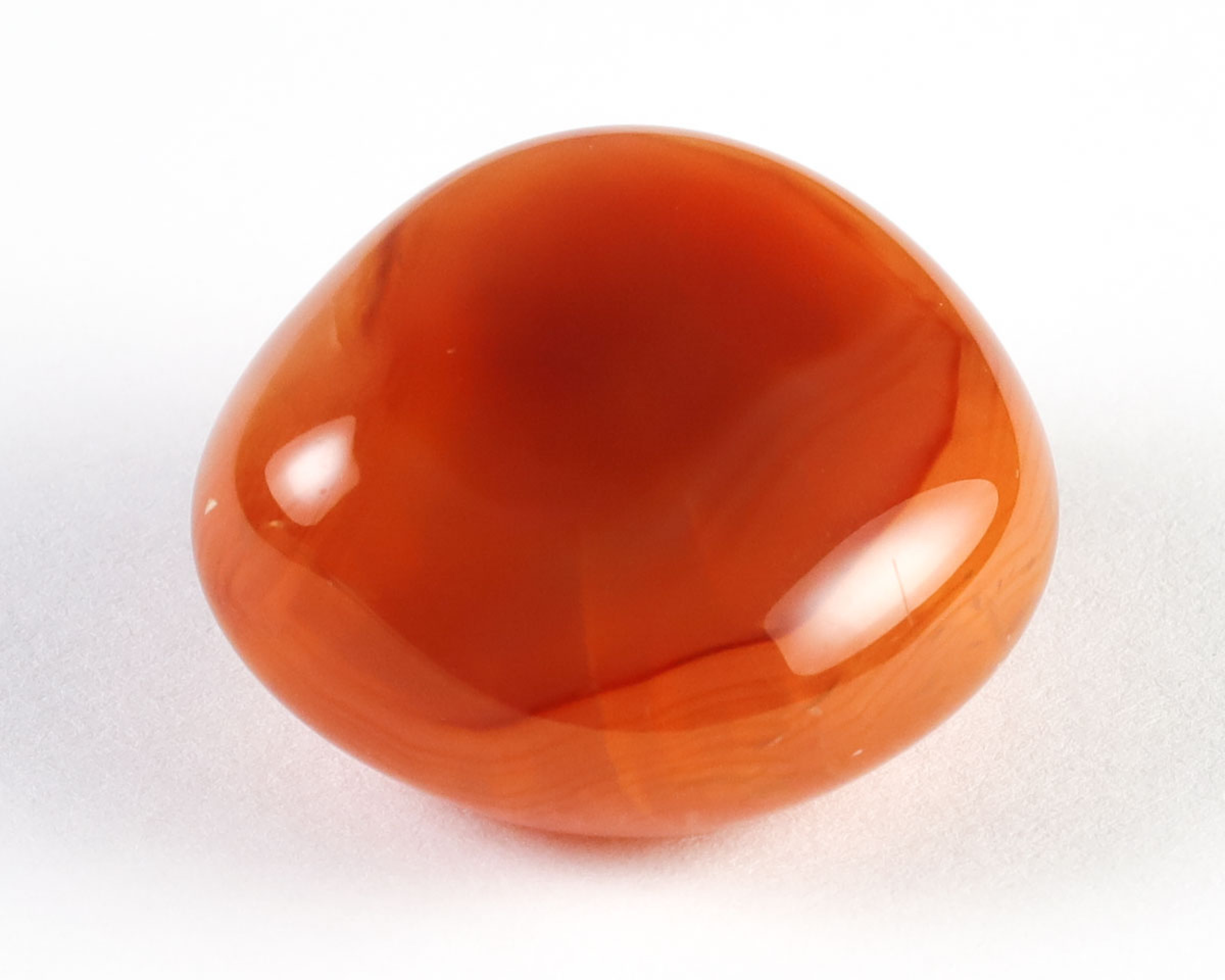 Lokalizacja: BrazyliaKarneol wygrzewany, powstał z szarego chalcedonu poddanego obróbce termiczne, tak jak 90% karneoli dostępnych w sprzedaży.