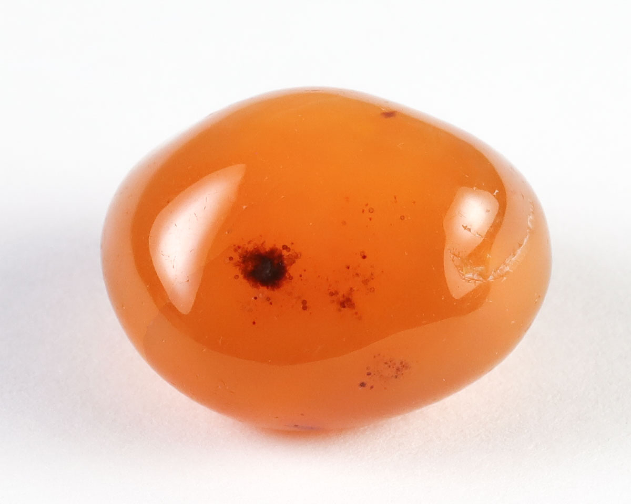 Lokalizacja: BrazyliaKarneol wygrzewany, powstał z szarego chalcedonu poddanego obróbce termiczne, tak jak 90% karneoli dostępnych w sprzedaży.