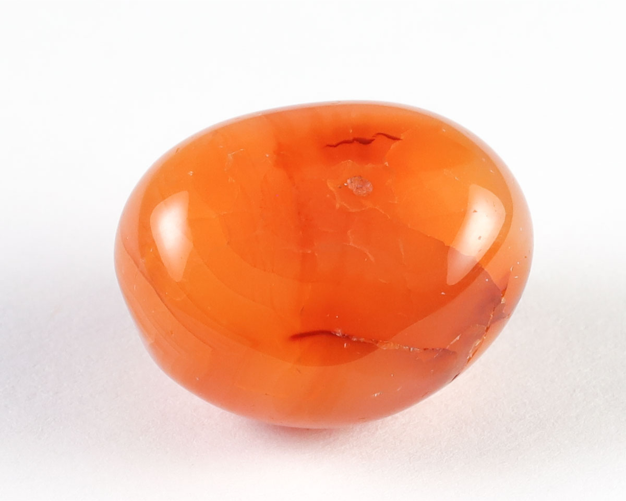 Lokalizacja: BrazyliaKarneol wygrzewany, powstał z szarego chalcedonu poddanego obróbce termiczne, tak jak 90% karneoli dostępnych w sprzedaży.