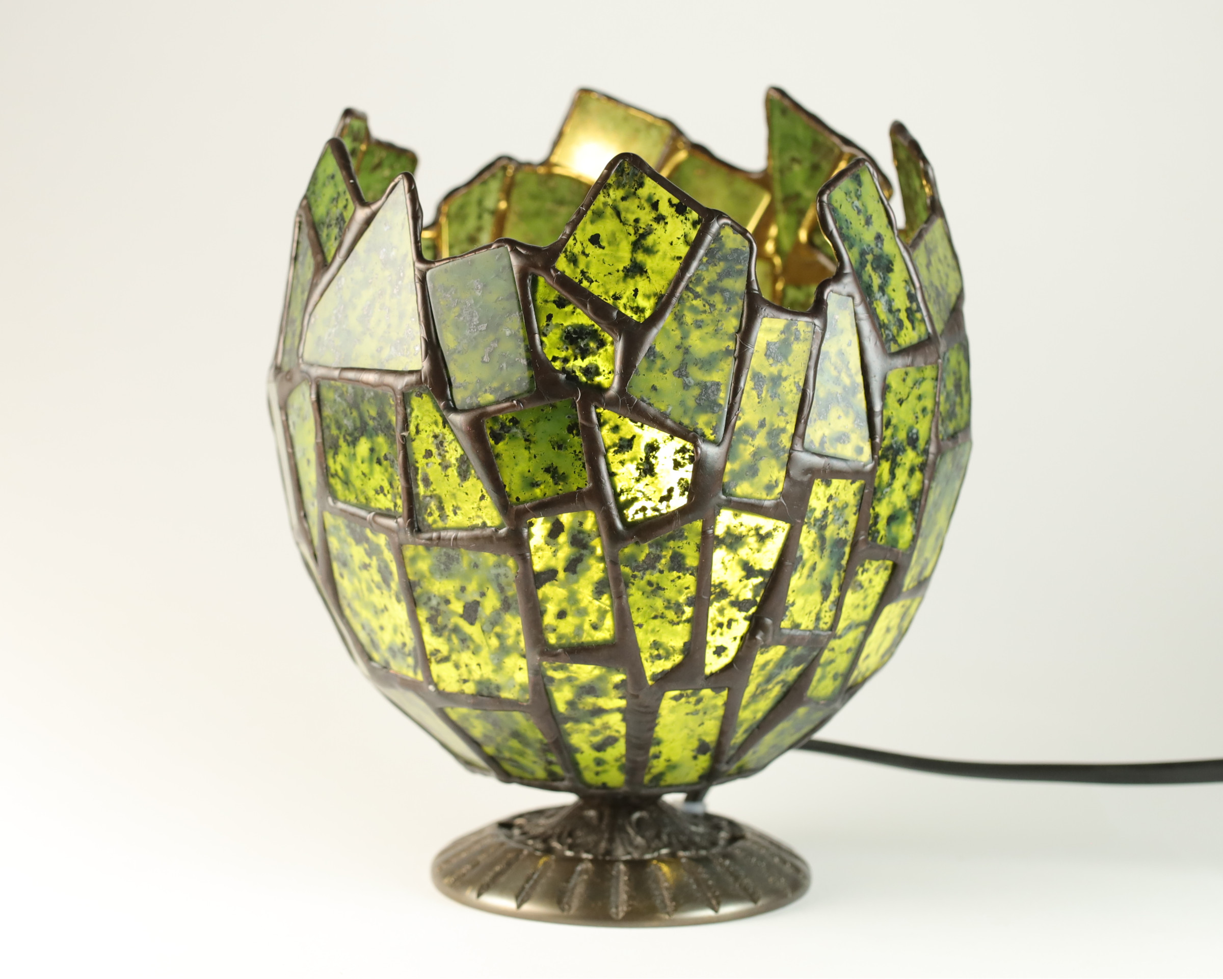 Podstawa wykonana z mosiądzu, spoiwem łączącym kamienie jest cyna.