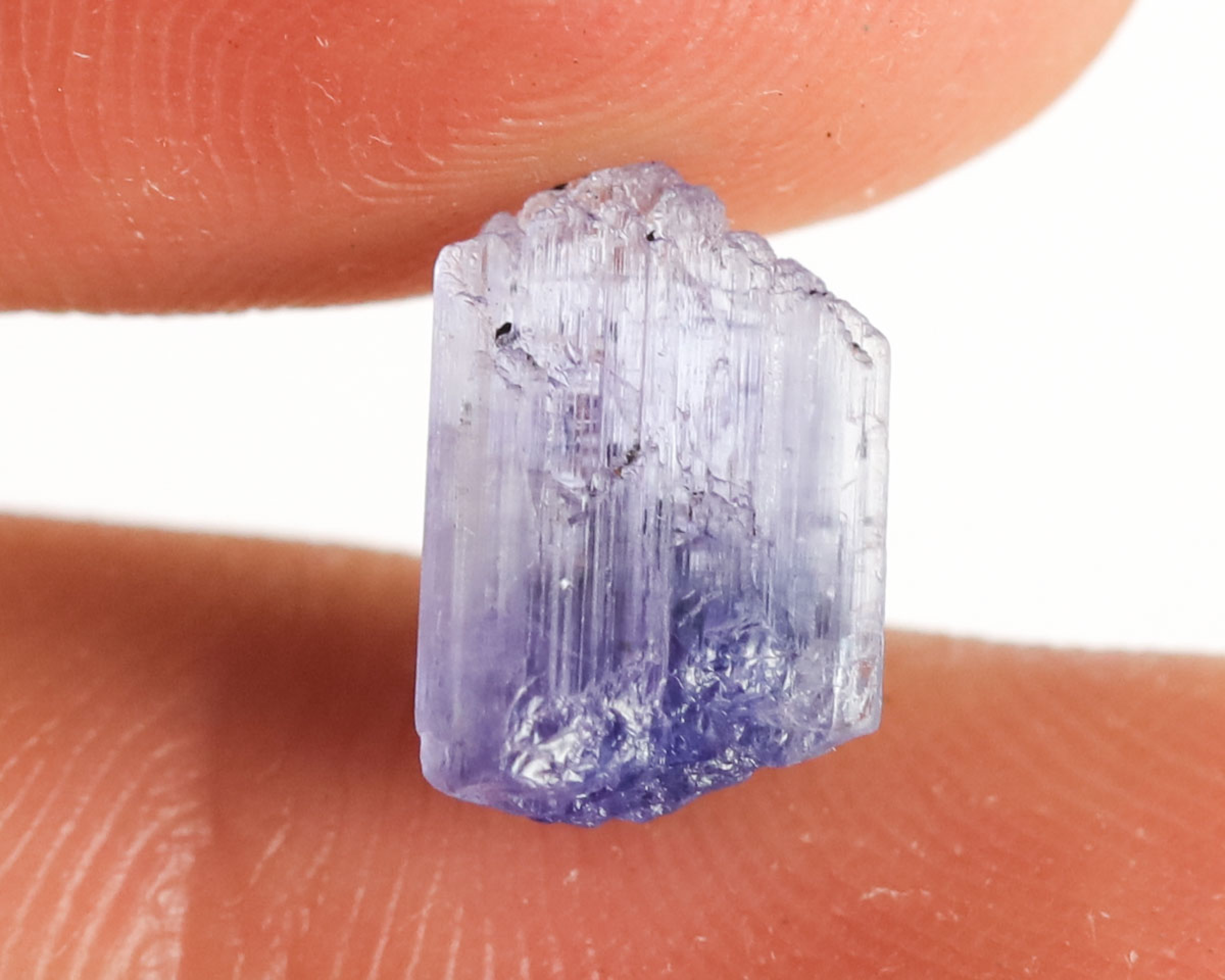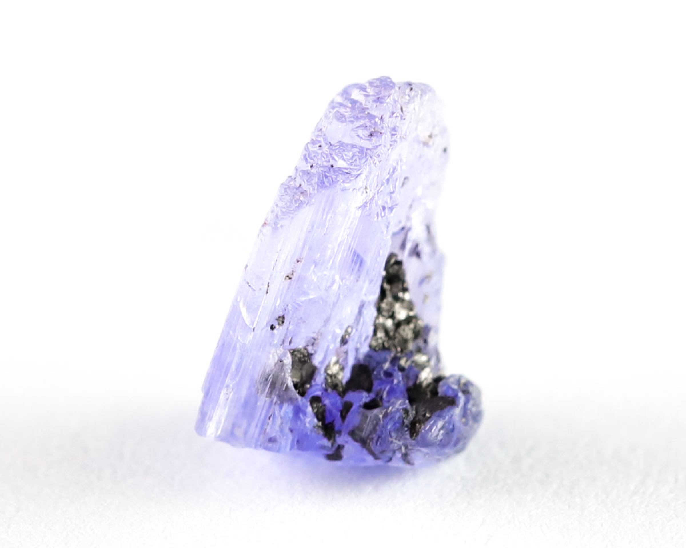 Tanzanit w formie naturalnego kryształu.