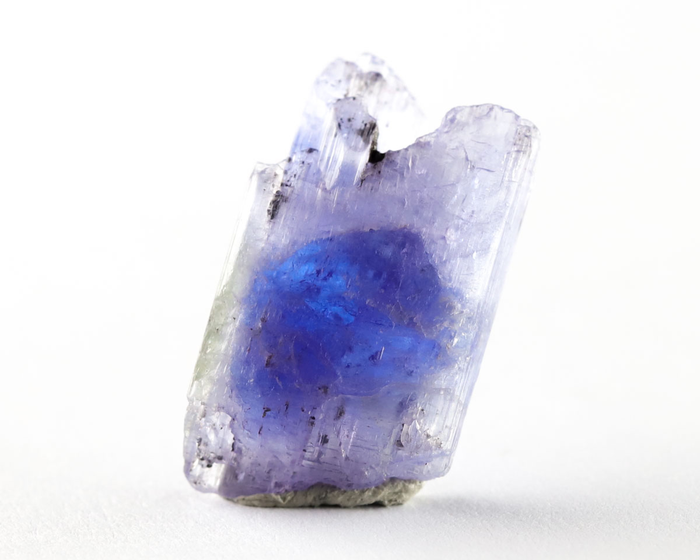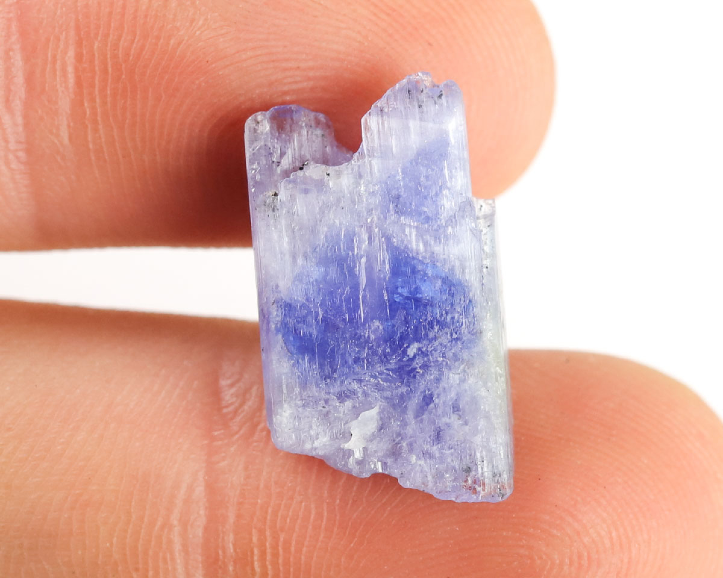 Tanzanit w formie naturalnego kryształu.