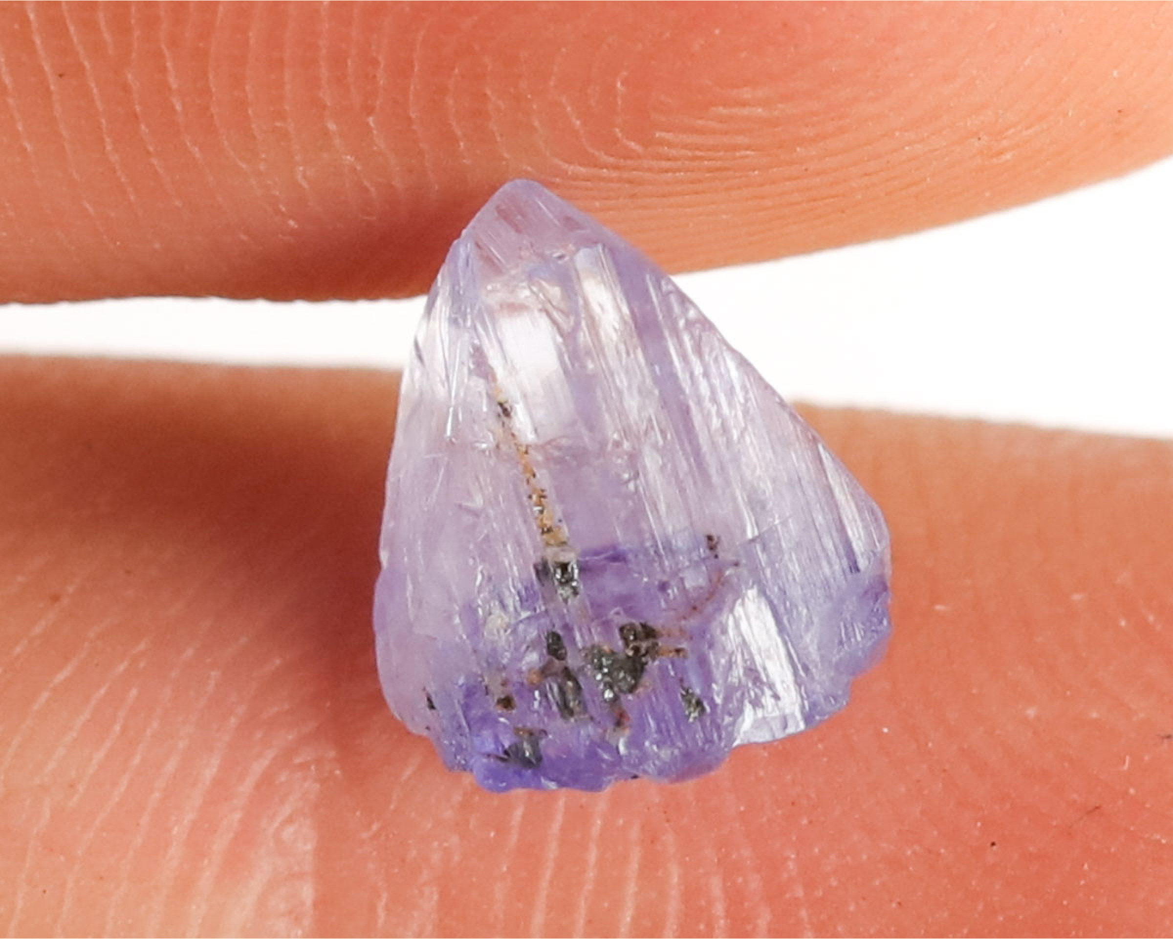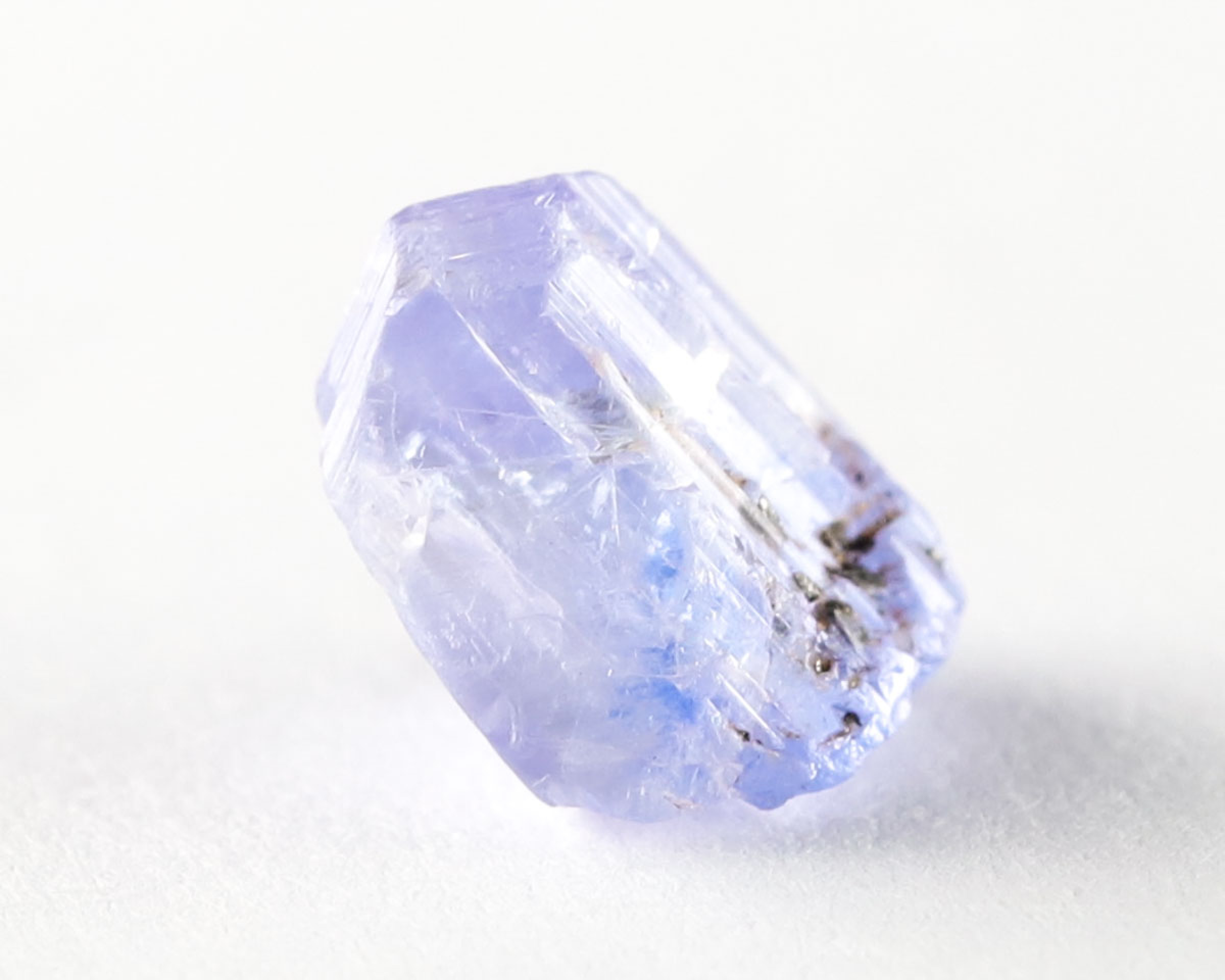 Tanzanit w formie naturalnego kryształu.